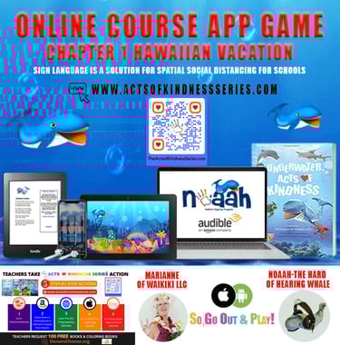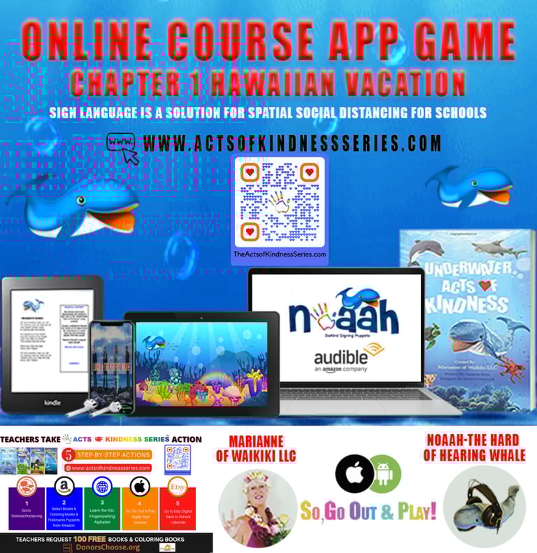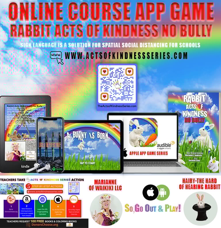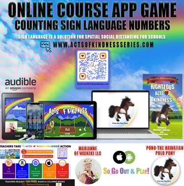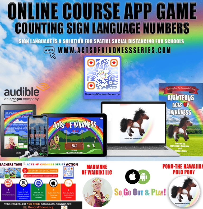Teachers across the USA can request copies of The Acts of Kindness Series storybooks and coloring books for every student through DonorsChoose.org. Additionally, explore the Apple Store for The Acts of Kindness App Games, offering American Sign Language (ASL) Fingerspelling Alphabet online courses which correspond to chapters of the books. These resources are specifically designed to support deaf students and enhance their learning experience.